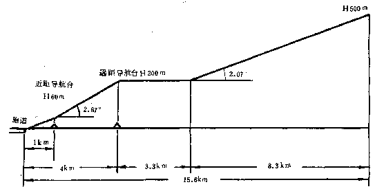 B1  運輸機(jī)按遠(yuǎn)、近距導(dǎo)航臺進(jìn)場著陸時的下滑線(下圖)。